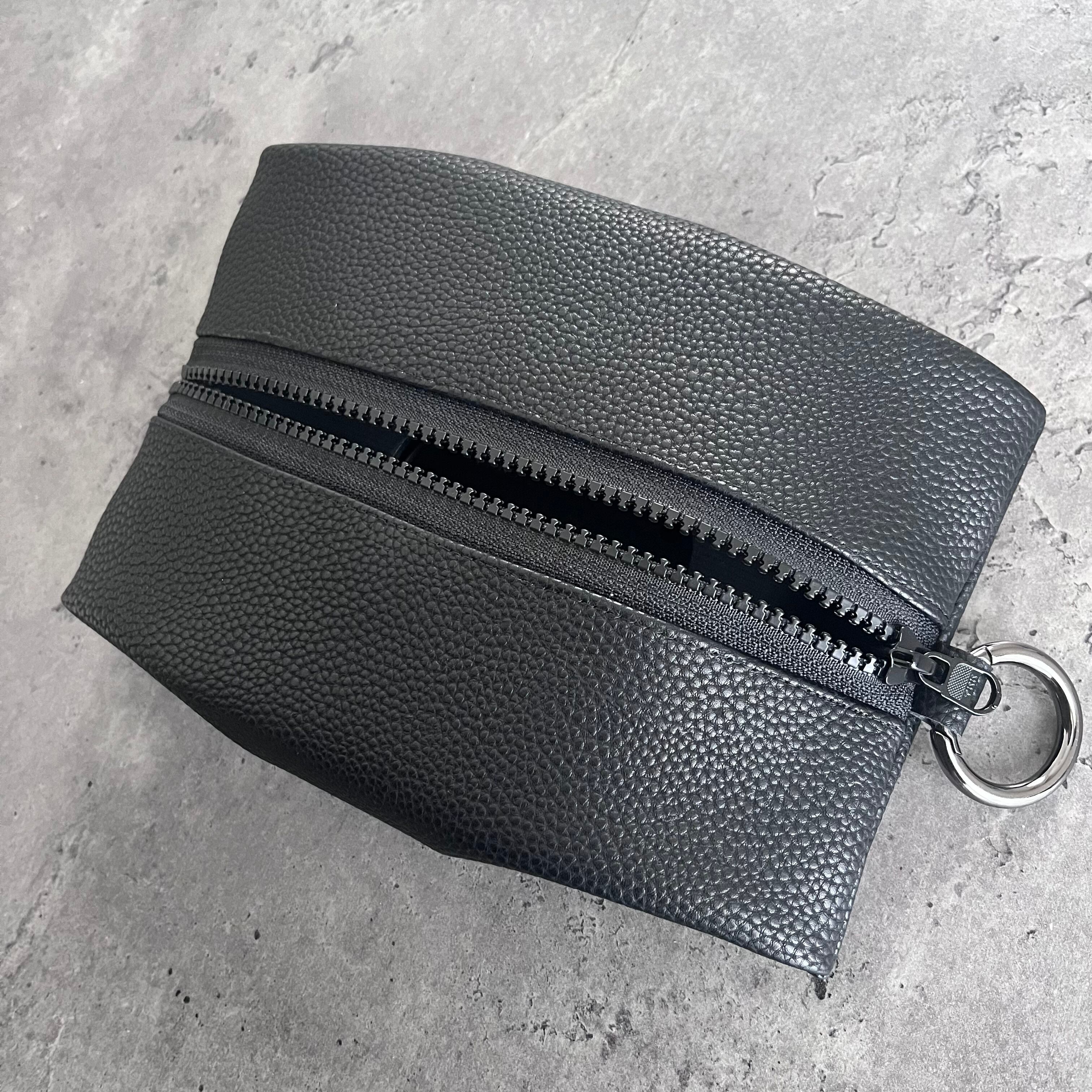 ファスナー、生地、カラビナ(黒ニッケル)すべてブラックで揃えて統一感を出しています