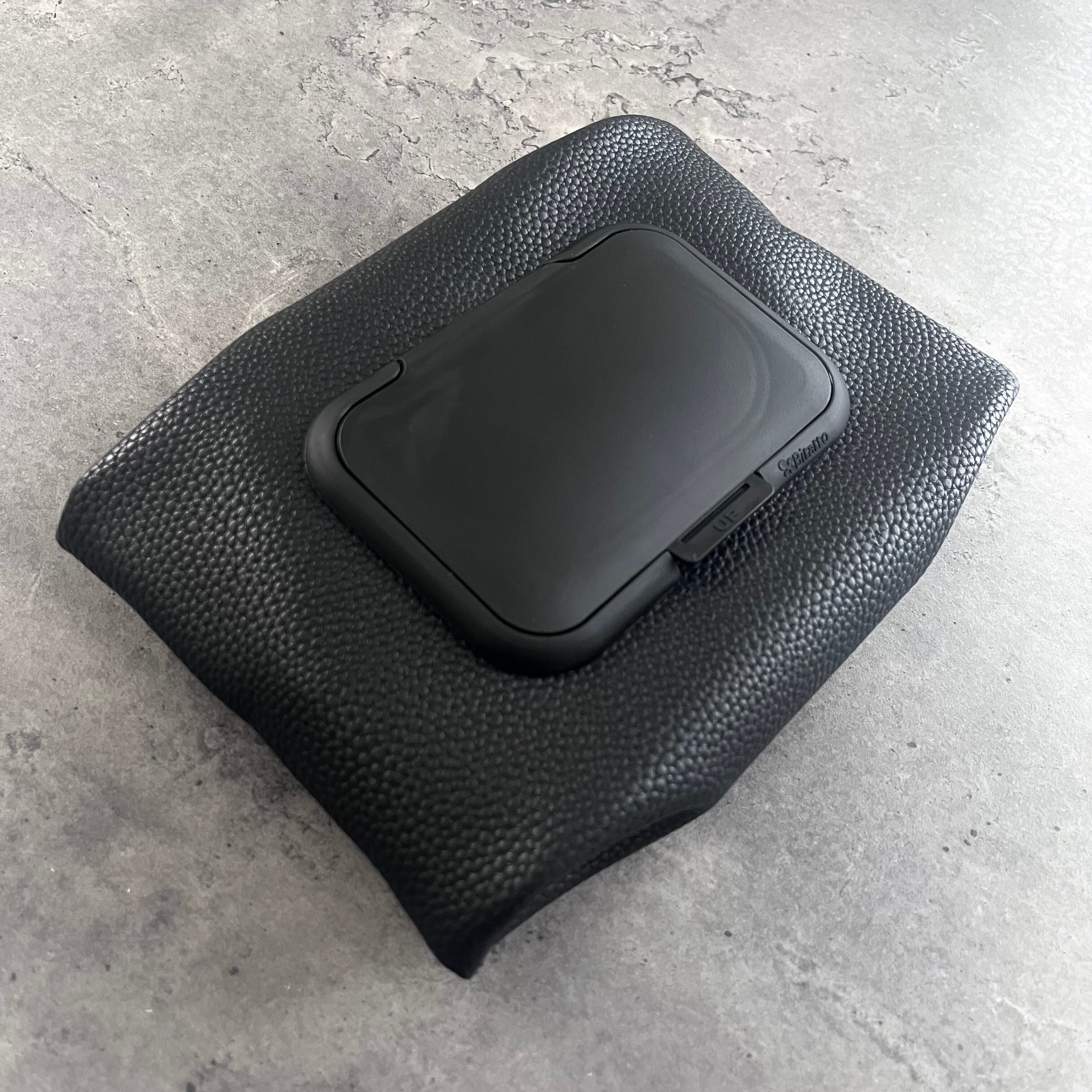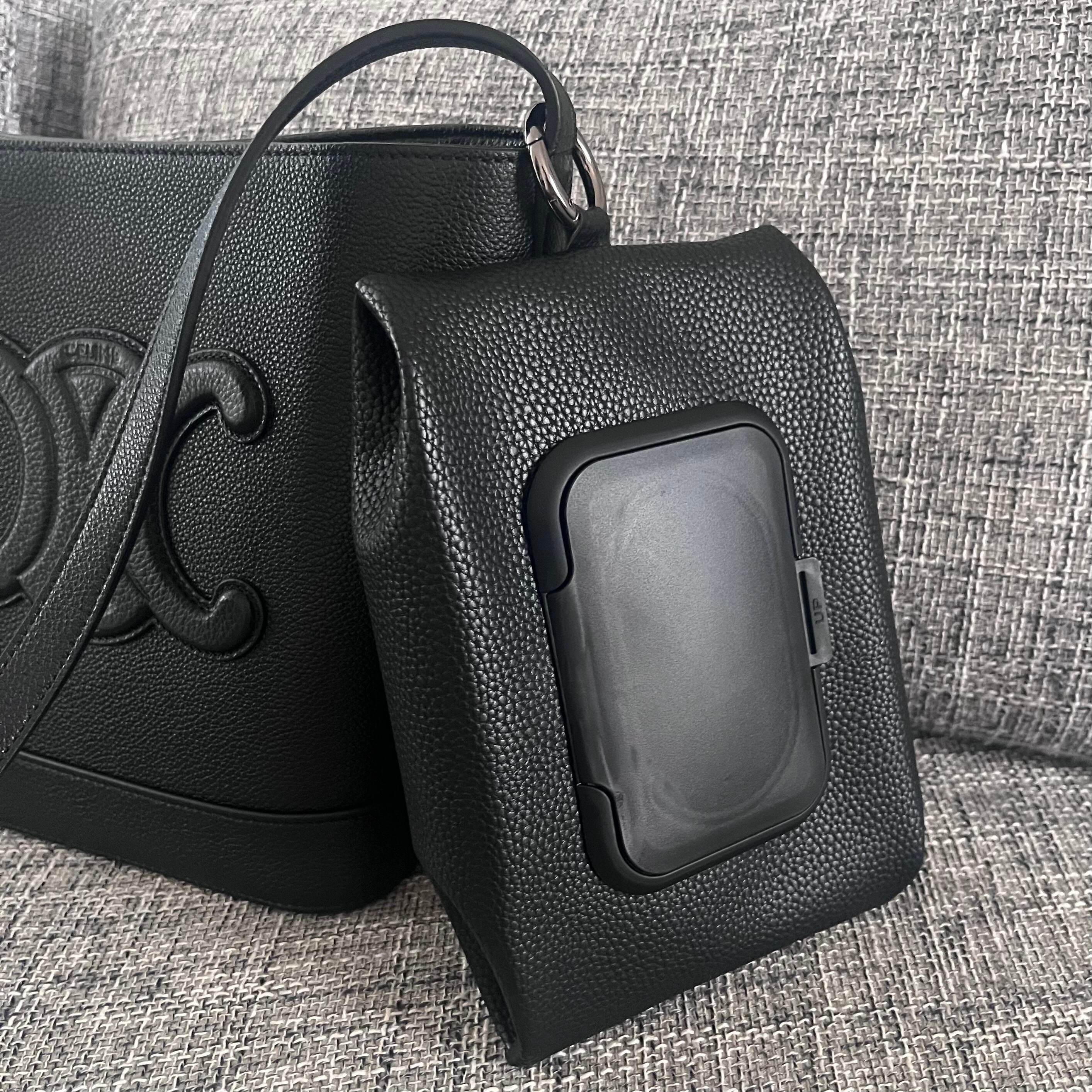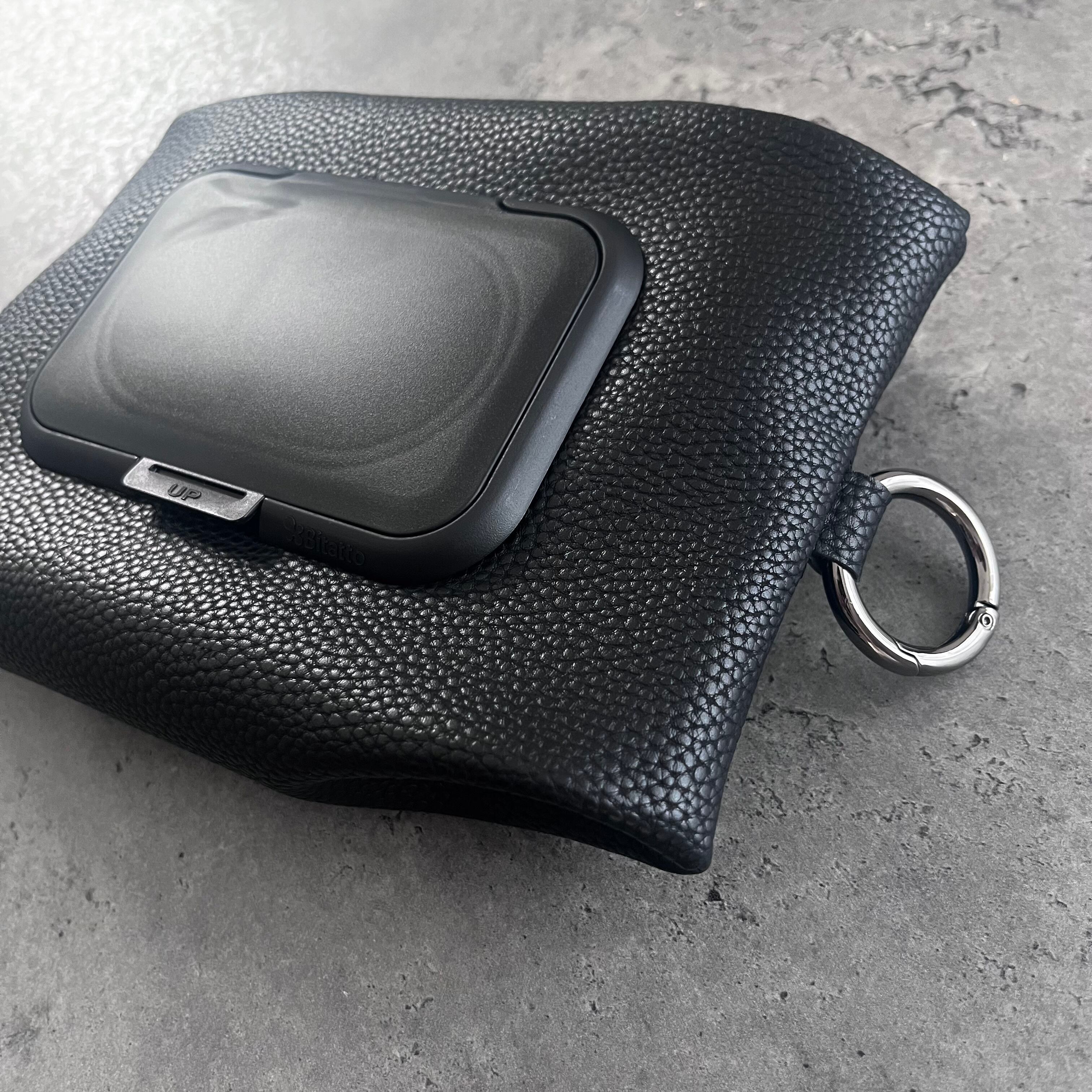 ファスナー、生地、カラビナ(黒ニッケル)すべてブラックで揃えて統一感を出しています