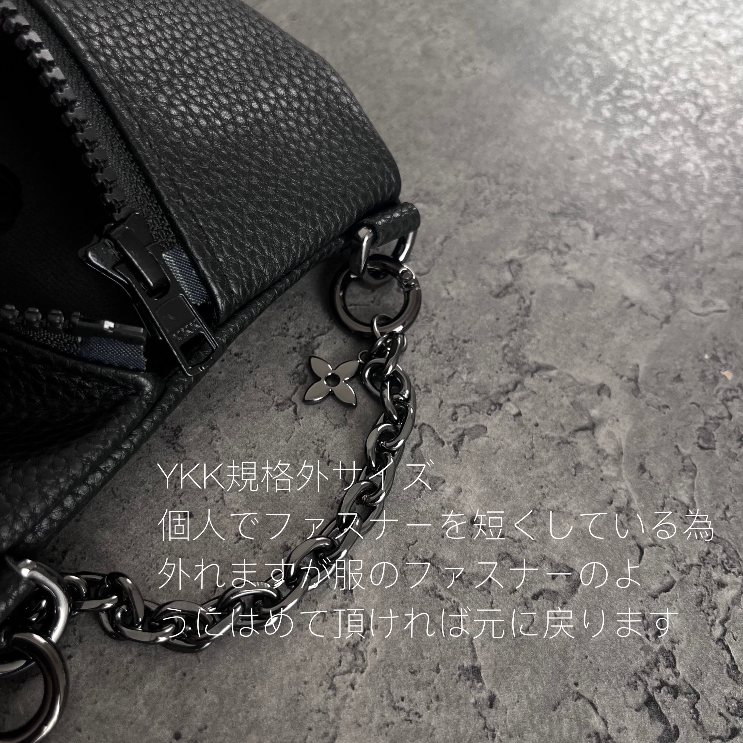 ファスナー、生地の色を揃えて統一感を出しています
