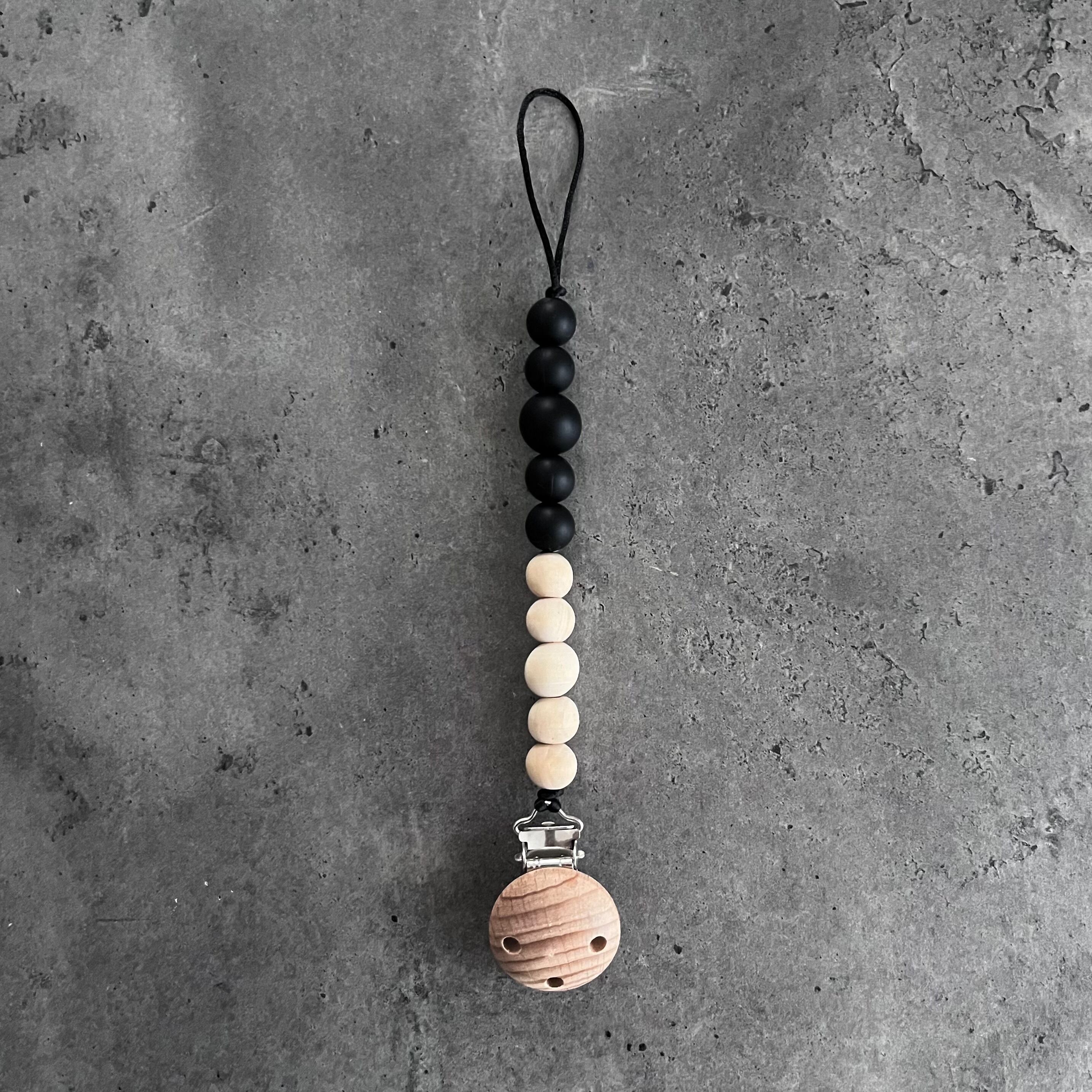 天然のウッドビーズとマットブラックのシリコンビーズを使用しています